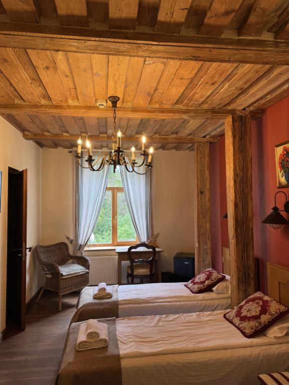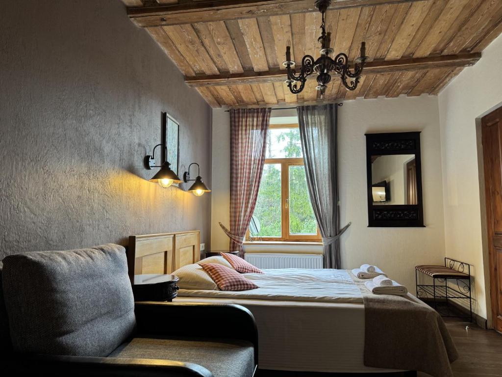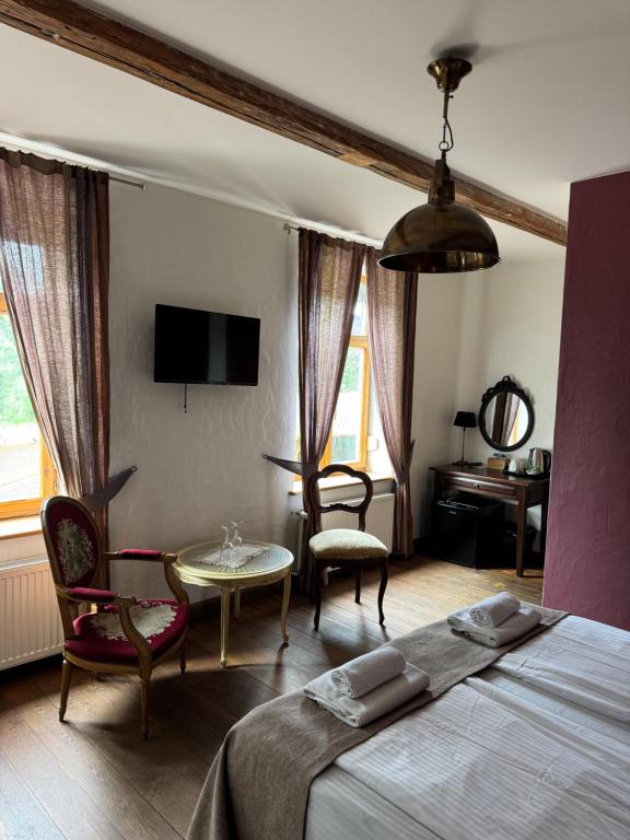 2014. – 2015.gadā renovētas un no jauna izbūvētas 13 labiekārtotas istabiņas, kurās iespējams uzņemt 36 cilvēkus. Istabiņas iekārtotas ar elegantām koka mēbelēm, komfortablām gultām un tekstīlijām no dabīgiem materiāliem. Katrā istabiņā ir pieejama vannas istaba ar dušu, WC, matu žāvētāju. Papildus ērtībām LCD televizors un WiFi. Brokastis pieejamas viesnīcas restorānā. Atkarībā no sezonas un pieprasījuma.