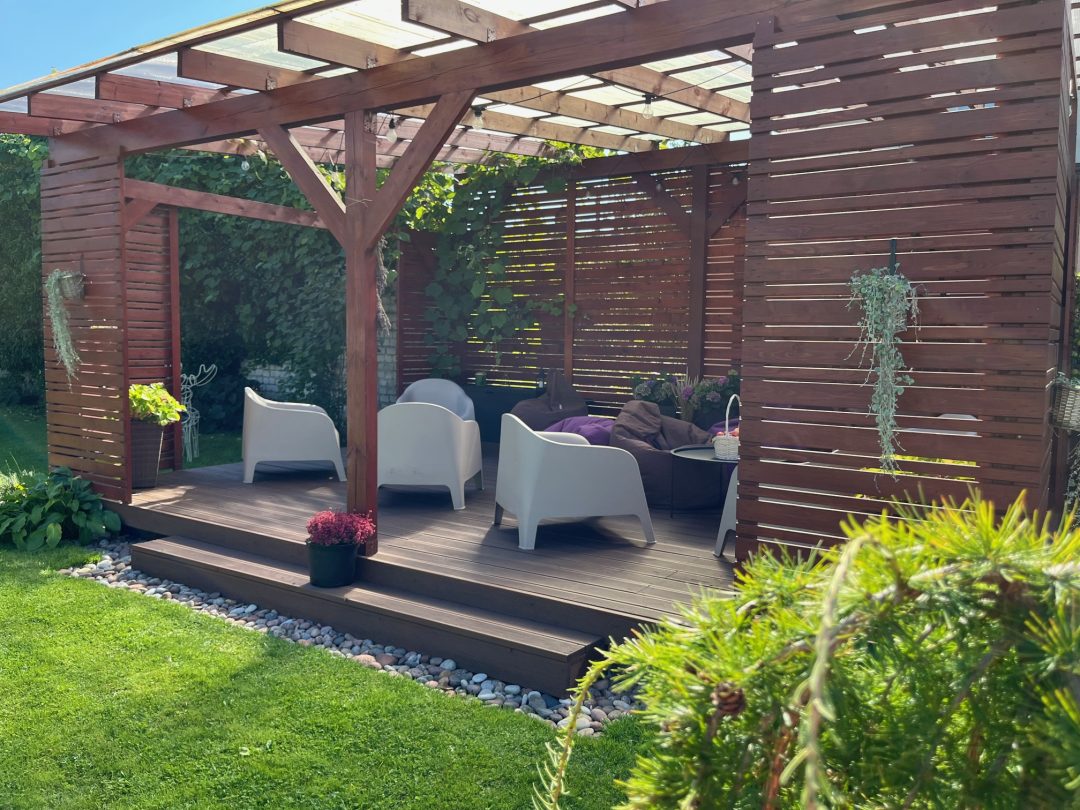 Viesu ērtībām ir pieejams kluss un mājīgs iekšpagalms ar terasi, krēsliem,