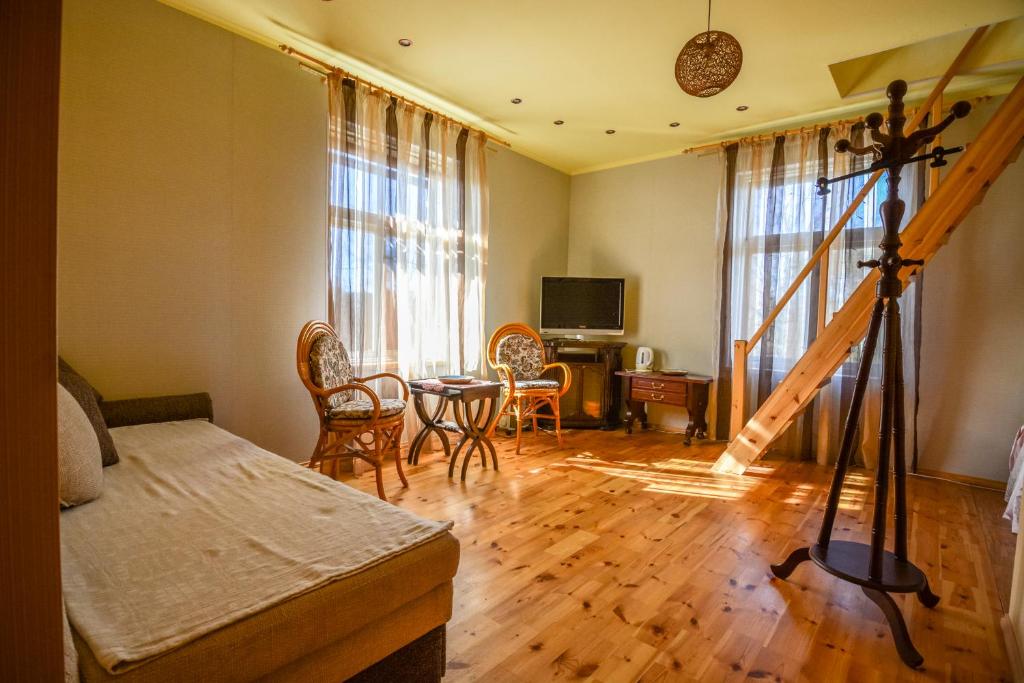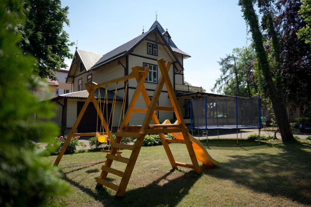 Māja atrodas ļoti labā vietā, 5-minūšu gājienā no galvenās pludmales, blakus bērnu pilsētiņa, slēpošanas kalns, piejūras parks. Sētā ir mangalis, šūpoles, batuts, basketbola grozs, hokeja vārti, galda teniss. Istabās ir TV, ir vairākas dušas, tualetes, virtuves, ledusskapji, mikroviļņu krāsniņa, tējkanas, nodrošinam ar gultasveļu. Māja ir vēsturiska, istabas ar augstiem griestiem. Sēta noslēgta, bezmaksas autostāvieta.