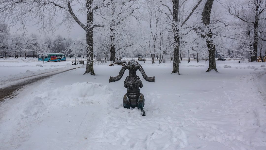 Reņķa dārzā iespējams satikt Līgas Knēziņas darbu “Allo”, kas veidots kā citplanētietis, ar kuru var sazināties, ierunājot telefona klausulē.