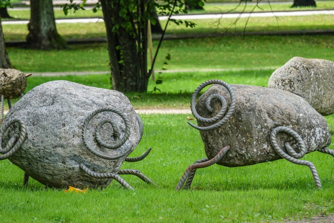 “Mākoņaitas” iespējams satikt Reņķa dārzā, kur ir arī citi vides objekti. Pavisam parkā draiskojas 10 tēlnieka Ģirta Burvja veidotie auni, aitiņas un jēriņi.
