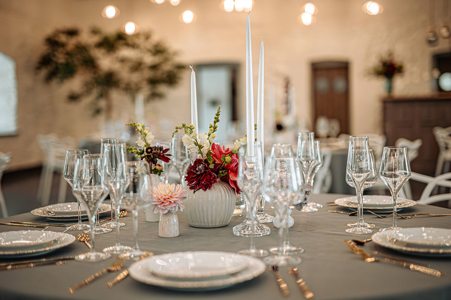 - Plaša svinību zāle ar pilnu aprīkojumu, iekļauta zāles inventāra noma: galdi, krēsli, galdauti, trauki, glāzes, galda piederumi, salvetes
