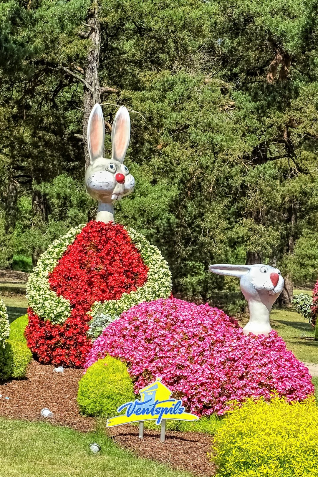 Ziedu skulptūra MĀRĪŠU ĢIMENE UZ MARGRIETIŅAS