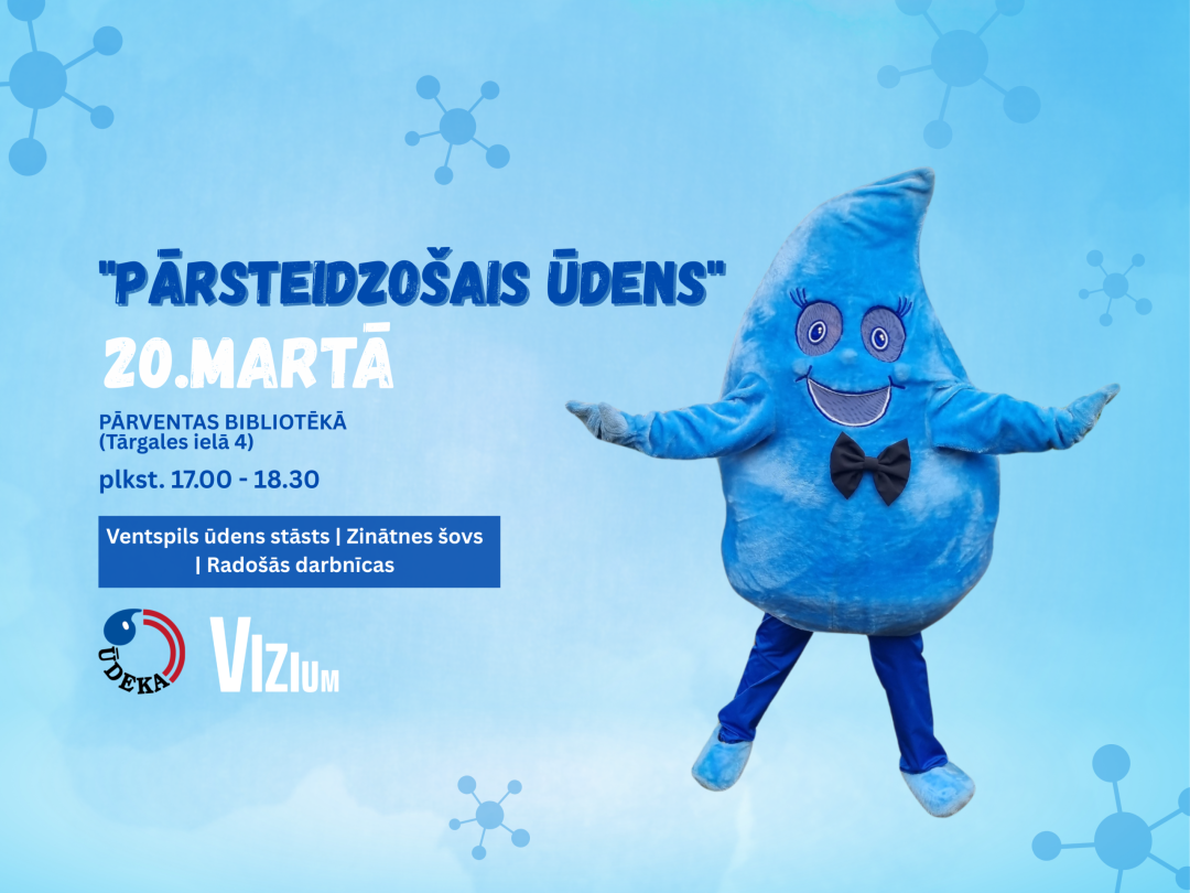 Par godu Pasaules ūdens dienai, pašvaldības SIA “ŪDEKA” aicina pirmsskolas un sākumskolas vecuma bērnus uz izzinošu un aizraujošu pasākumu “Pārsteidzošais ūdens”, kas notiks 20. martā no plkst. 17.00 līdz 18.30 Pārventas bibliotēkā, Tārgales ielā 4.