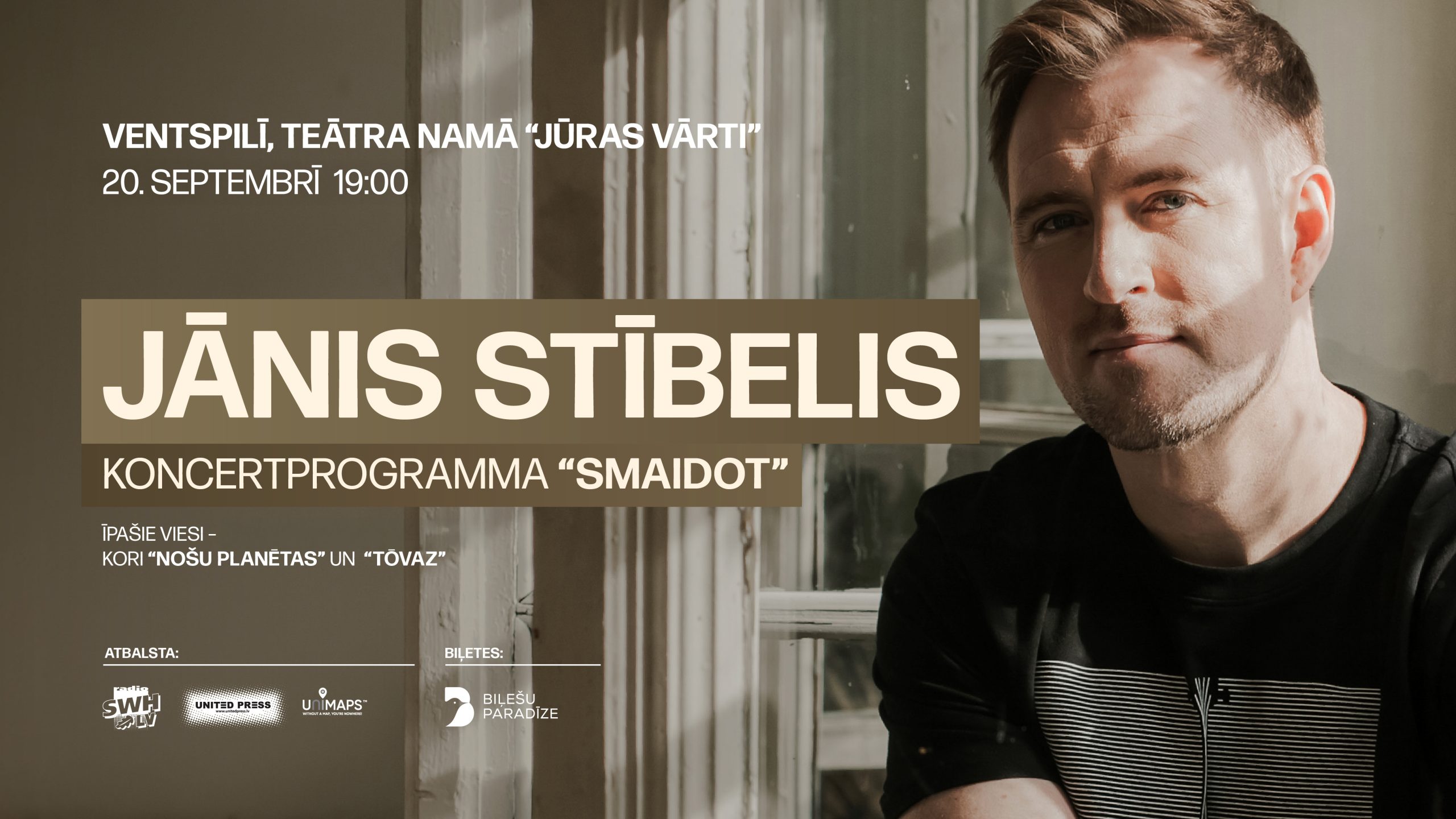 « Si notre vie, au sens figuré, est comme un voyage, alors je veux le vivre en souriant », vous invite le musicien, chanteur et compositeur Jānis Stībelis à ses concerts d'automne « Smiling ». « Je souhaite vous transmettre des émotions mêlées à des chansons optimistes, positives et romantiques, pour que nous puissions tous sourire lors de ces concerts. »