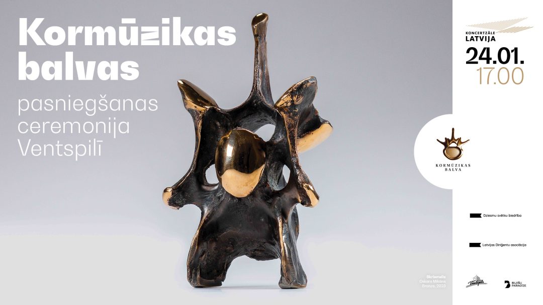 Sestdien, 24. janvārī, plkst. 17.00 Ventspilī, koncertzālē “Latvija”, notiks Kormūzikas balvas 2025 pasniegšanas ceremonija. Pasākumā piedalīsies iepriekšējo gadu Kormūzikas balvas laureāti, un koncertprogrammā skanēs Raimonda Tigula, Pētera Vaska, Raimonda Paula, Marģera Zariņa un Lauras Jēkabsones skaņdarbi. Koncerta režisore – Anna Klišāne.