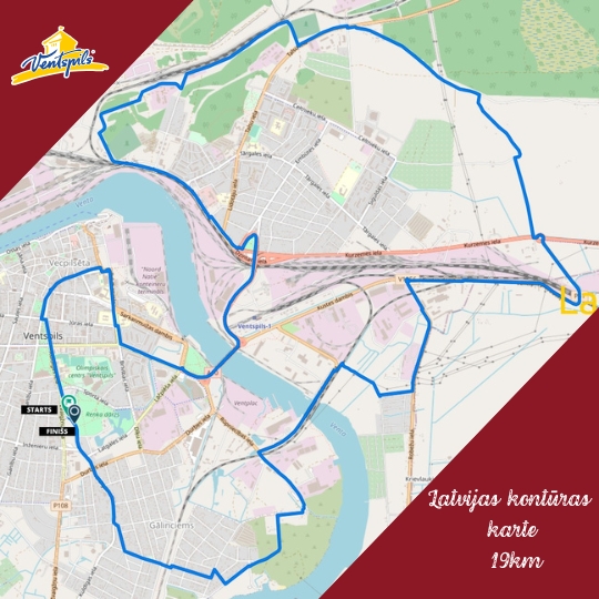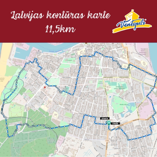 - 11,5 km – skriešana, nūjošana vai iešana (starts Zvaigžņu un Sabiles ielu krustojumā);