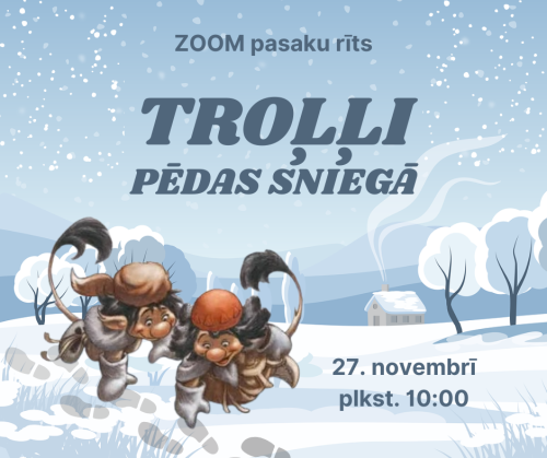 ZOOM Pasaku rīts. Fragmentus no grāmatas "Troļi. Pēdas sniegā" lasa bibliotekāre Alise. Pieslēgšanās saite nemainīga: https://us06web.zoom.us/j/89071258777?pwd=SGdXbzdleWhHZkdsTE9udU1BKzlaQT09 Meeting ID: 890 7125 8777 Passcode: 526412