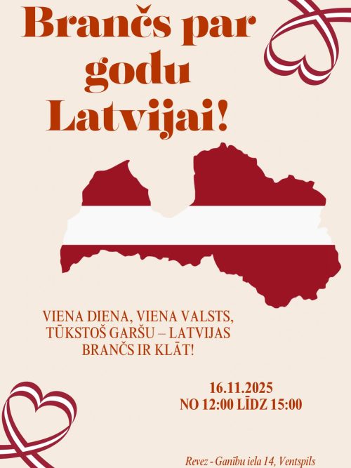 Latvijas Republikas proklamēšanas dienā, 18. novembrī plkst. 18.00, Ventspils Lielajā laukumā notiks svinīgs koncerts “Baltas balsis Latvijai”, kurā uzstāsies mūziķis Markus Riva un Talsu Baltais koris, piedaloties arī Ventspils bērnu un jauniešu koriem. Latvijas neatkarības 107. gadadienas...