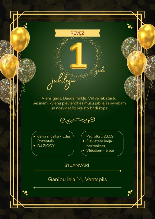 31. janvārī Ventspilī norisināsies restorāna REVEZ jubilejas pasākums – vakars, kas veltīts kopīgai svinēšanai, mūzikai un dejām. No plkst. 20.00 par vakara muzikālo noskaņu rūpēsies Edijs Rozentāls, piedāvājot klausītājiem labi zināmas un līdzi dziedamas...