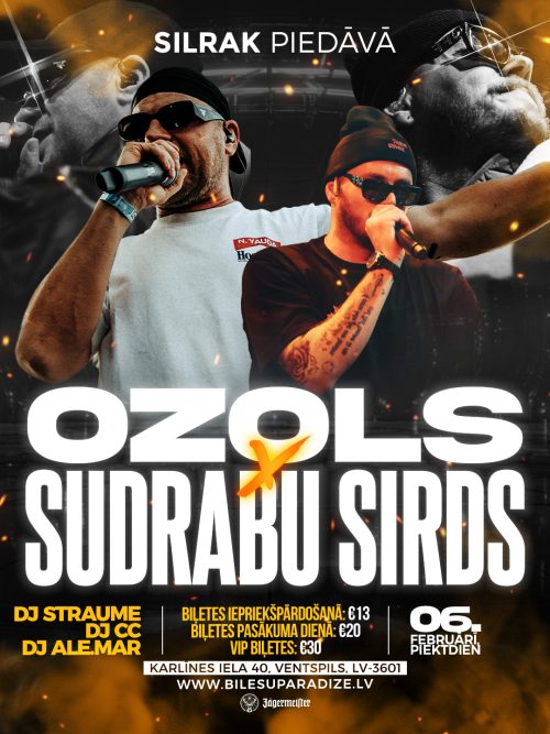 6. februārī norisināsies SILRAK šīs sezonas atklāšanas pasākums, kurā uzstāsies Latvijas hiphopa skatuves vadošie mākslinieki – Sudrabu Sirds un Ozols. Par vakara muzikālo noskaņu un deju ritmiem rūpēsies DJ Straume, DJ CC un DJ...