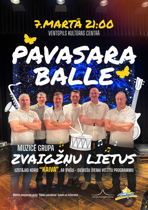 7. martā plkst. 21.00 Ventspils Kultūras centrā norisināsies Pavasara balle. Par muzikālo noformējumu rūpēsies grupa “Zvaigžņu lietus”, savukārt īpašu – Starptautiskajai sieviešu dienai veltītu programmu apmeklētājiem dāvinās jauktais koris “Kaiva” (diriģente Ginta Rūse). Grupa...