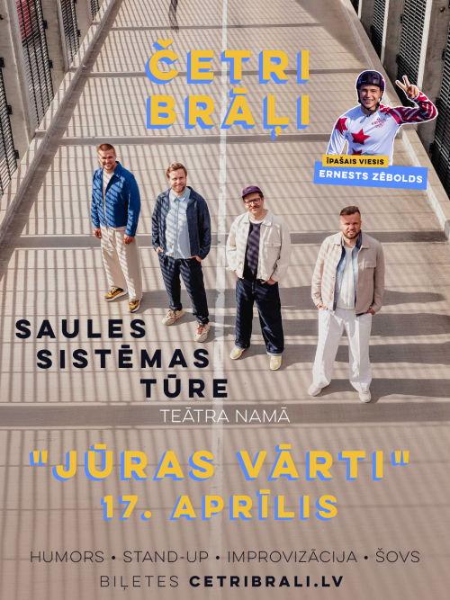Šajā pavasarī visā Latvijā gaidāms īpašs notikums – unikālais humora šovs “Četri brāļi” dodas vērienīgā “Saules sistēmas tūrē”. Pēc skatītāju pieprasījuma viņi izbrauc ārpus Rīgas, apciemojot astoņas Latvijas pilsētas. Kurzemē būs tikai viena iespēja...