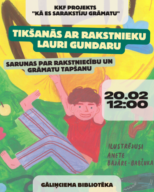 20.februārī plkst. 12.00 Gāliņciema bibliotēkā viesosies dramaturgs, režisors, scenārists, rakstnieks Lauris Gundars Kultūrkapitāla fonda projekta "Kā es sarakstīju grāmatu" ietvaros.