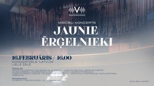 Aicinām uz mācību koncertu "Jaunie ērģelnieki" šī gada 16.februārī plkst. 16.00 koncertzāles "Latvija" Lielajā zālē. Piedalās Jāzepa Mediņa Rīgas Mūzikas vidusskolas un Ventspils Mūzikas vidusskolas audzēkņi - Agrita Eva Kristapsone, Raita Kristiāna Leiškalne, Karlīne Baltiņa, Karīna Bumbiere, Lauma Gabriela...