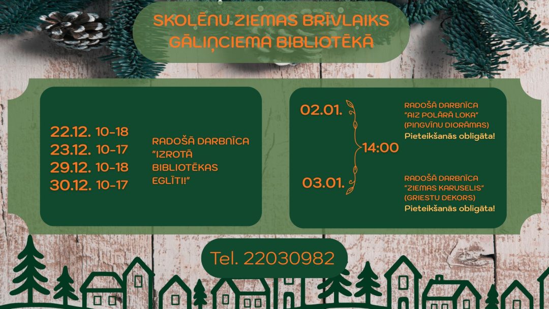 Bibliotekāres būs sagatavojušas materiālus radošajam darbam, lai bērni varētu visas dienas garumā radīt eglītes rotājumus. Laipni aicināti arī citi interesenti.