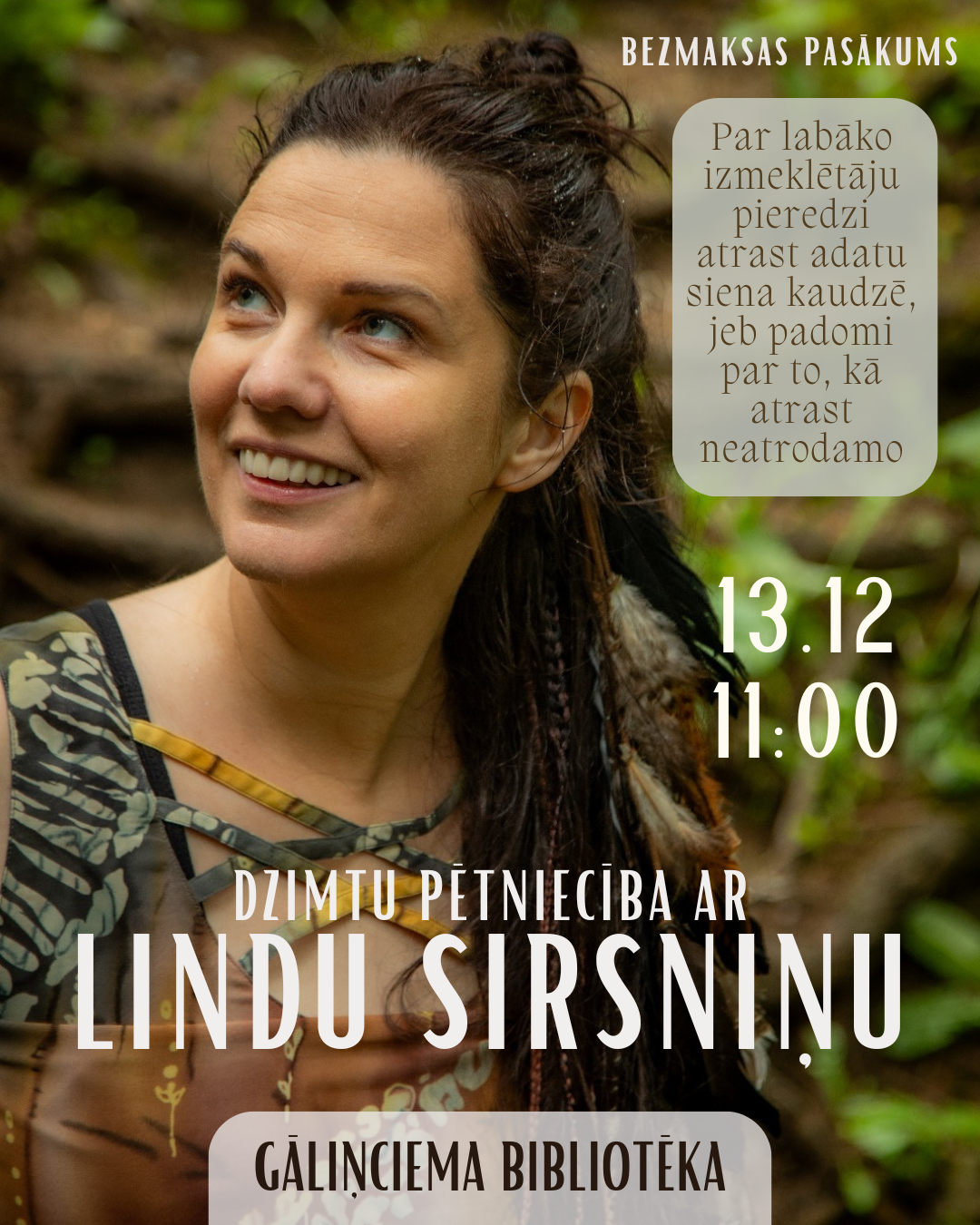 Tikšanās ar Facebook grupas “Dzimtas detektīvs” veidotāju, dzimtu pētniecības vietnes Geni.com ilggadēju Latvijas kuratori, dzimtas pētnieku iedvesmotāju un apvienotāju Lindu Sirsniņu. Par labāko izmeklētāju pieredzi atrast adatu siena kaudzē, jeb padomi par to, kā atrast neatrodamo.