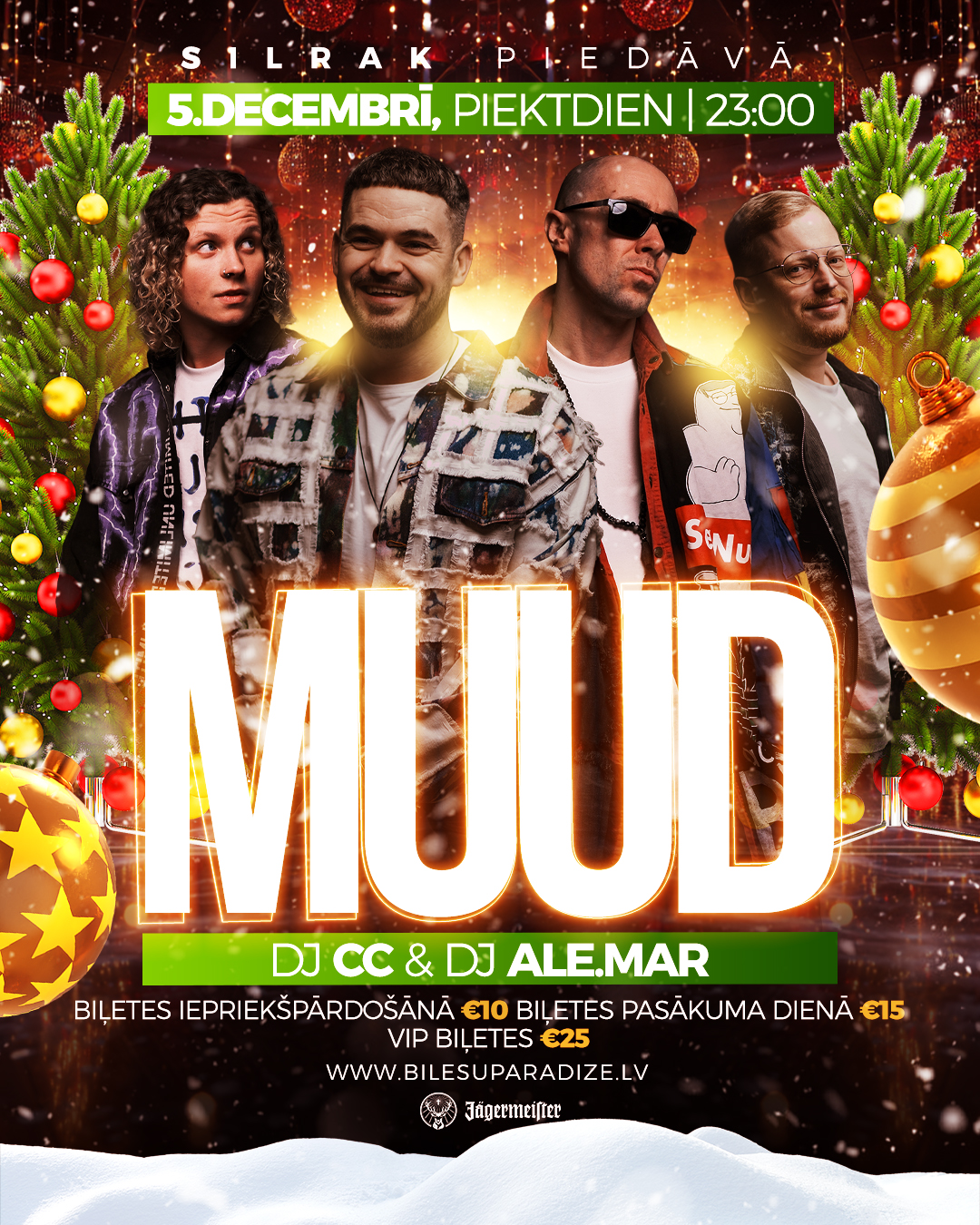 Piektdien, 5. decembrī ieskandināsim ziemu kopā ar grupu MUUD. Pirms un pēc koncerta uzstāsies DJ CC un DJ ALE. MAR.