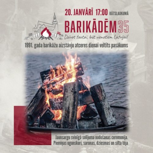 “BARIKĀDĒM – 35” 1991. gada barikāžu aizstāvju atceres dienai veltīts pasākums Rātslaukumā. Muzikāls atceres pasākums pie iekurtiem ugunskuriem. Uzstājas amatiermākslas kolektīvu dalībnieki, silta tēja. Jaunsargu svinīgā solījuma nodošanas ceremonija. Piejūras brīvdabas muzeja vadītāja, zemessarga Artūra…