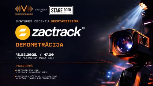Ventspils Mūzikas vidusskola sadarbībā ar STAGE DOOR BALTIC aicina uz skatuves objektu sekotājsistēmu “Zactrack” demonstrāciju. 18.martā plkst. 17.00 koncertzāles “Latvija” Mazajā zālē. Programmā |Prezentācija par “Zactrack” sekotājsistēmu Ventspils Mūzikas vidusskolas mūzikas tehnologu audzēkņu darbu prezentācijas…
