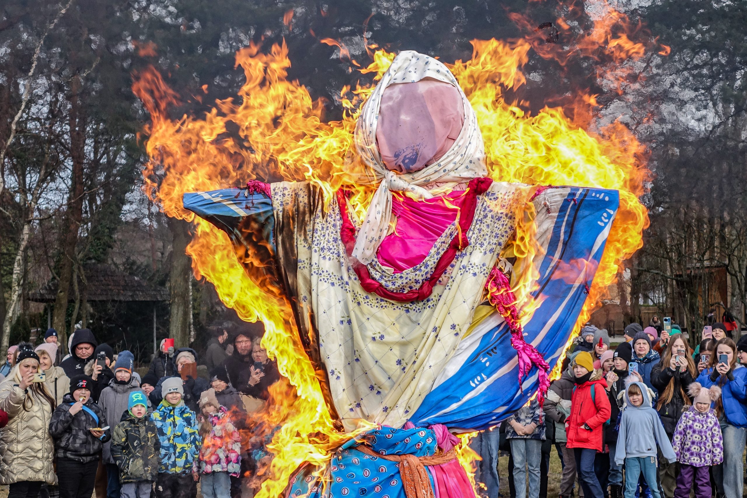 - tradicionāla Masļeņicas tēla sadedzināšana – ziemas pavadīšanas rituāls