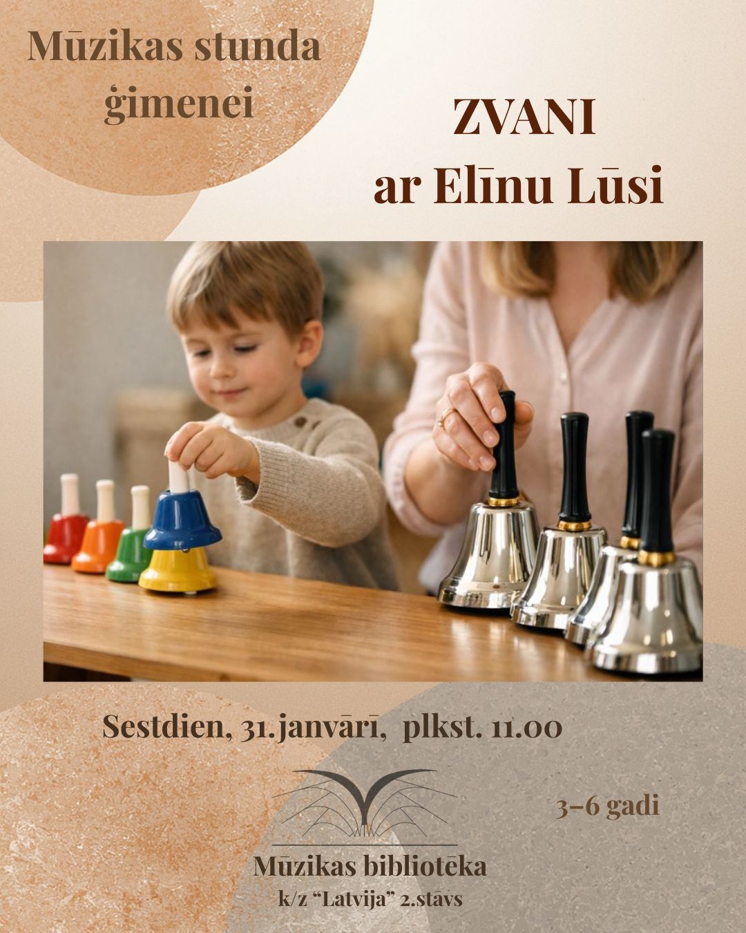 Mūzikas bibliotēka sestdien, 31. janvārī, plkst. 11.00 aicina vecākus ar bērniem no 3 līdz 6 gadiem uz nodarbību “Mūzikas stunda ģimenei”.