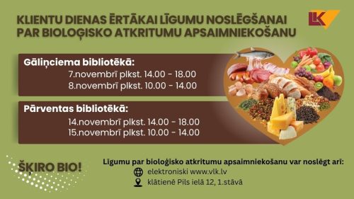 PSIA “Ventspils labiekārtošanas kombināts” rīko klientu dienas, lai nodrošinātu iedzīvotājiem ērtāku un pieejamāku bioloģisko atkritumu apsaimniekošanas līgumu noformēšanu. Klientu dienās Ventspils iedzīvotāji tiek aicināti uz Gāliņciema bibliotēku un Pārventas bibliotēku, kur uz vietas ar “Ventspils…