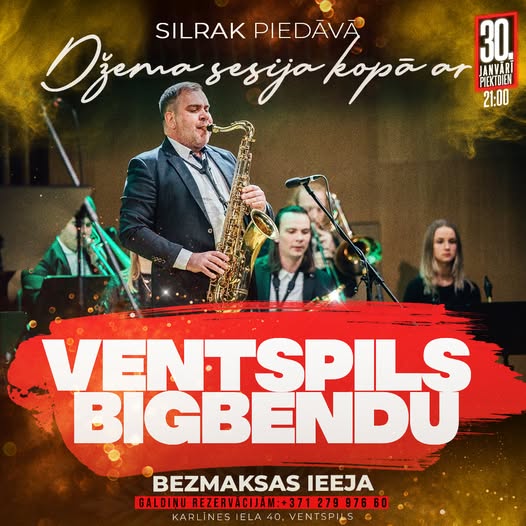 30.JANVĀRĪ, ŠO PIEKTDIEN – Turpinām Džema vakarus! Baudi izcilu mūziku un izcilus kokteiļus un ēdienus kopā ar Ventspils Bigbendu