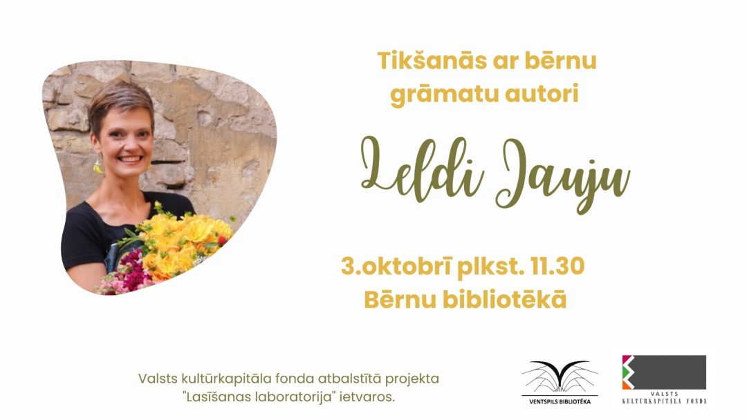 Piektdien, 3. oktobrī, plkst. 11.30 Ventspils Bērnu bibliotēkā Valsts kultūrkapitāla fonda atbalstītā projekta “Lasīšanas laboratorija” ietvaros viesosies bērnu grāmatu autore Lelde Jauja.