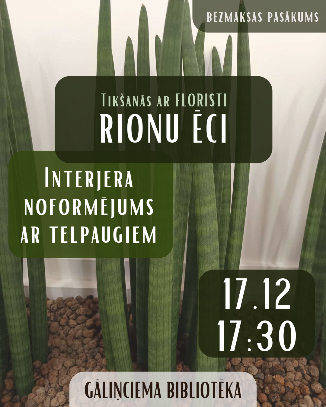 Interjera noformējums ar telpaugiem. Tikšanās ar floristi Rionu Ēci, sarunas par telpaugiem.