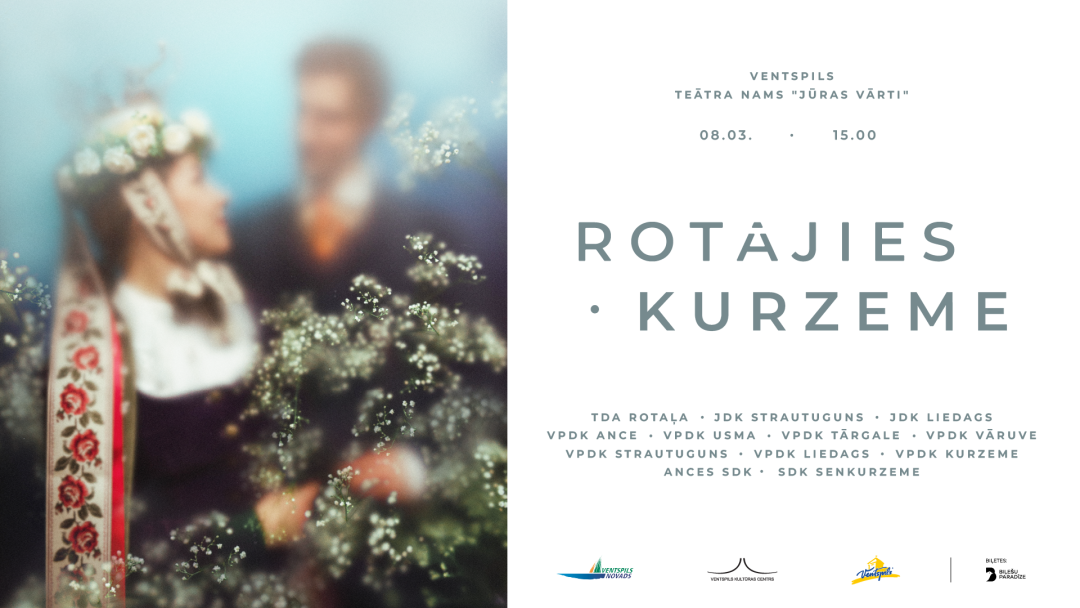 Svētdien, 8. martā plkst. 15.00 teātra namā “Jūras vārti” notiks Ventspils valstspilsētas un novada tautas deju kolektīvu kopkoncerts “Rotājies, Kurzeme!”, kurā skatītāji aicināti baudīt dejas prieku, pavasarīgu noskaņu un Kurzemes dejotāju kopības sajūtu.