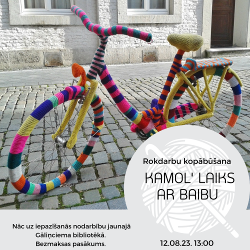 “Kamol’ laiks ar Baibu”. Iepazīšanās nodarbība. Jebkura vecuma interesentiem piedāvājam adīšanas nodarbības kopā ar Baibu Magoni Purvišķi, kur senais adīšanas arods apvienojas ar mūsdienīgām niansēm. Aicinām uz kopābūšanu gan lietpratējus, gan iesācējus. Bezmaksas pasākums, līdzi…
