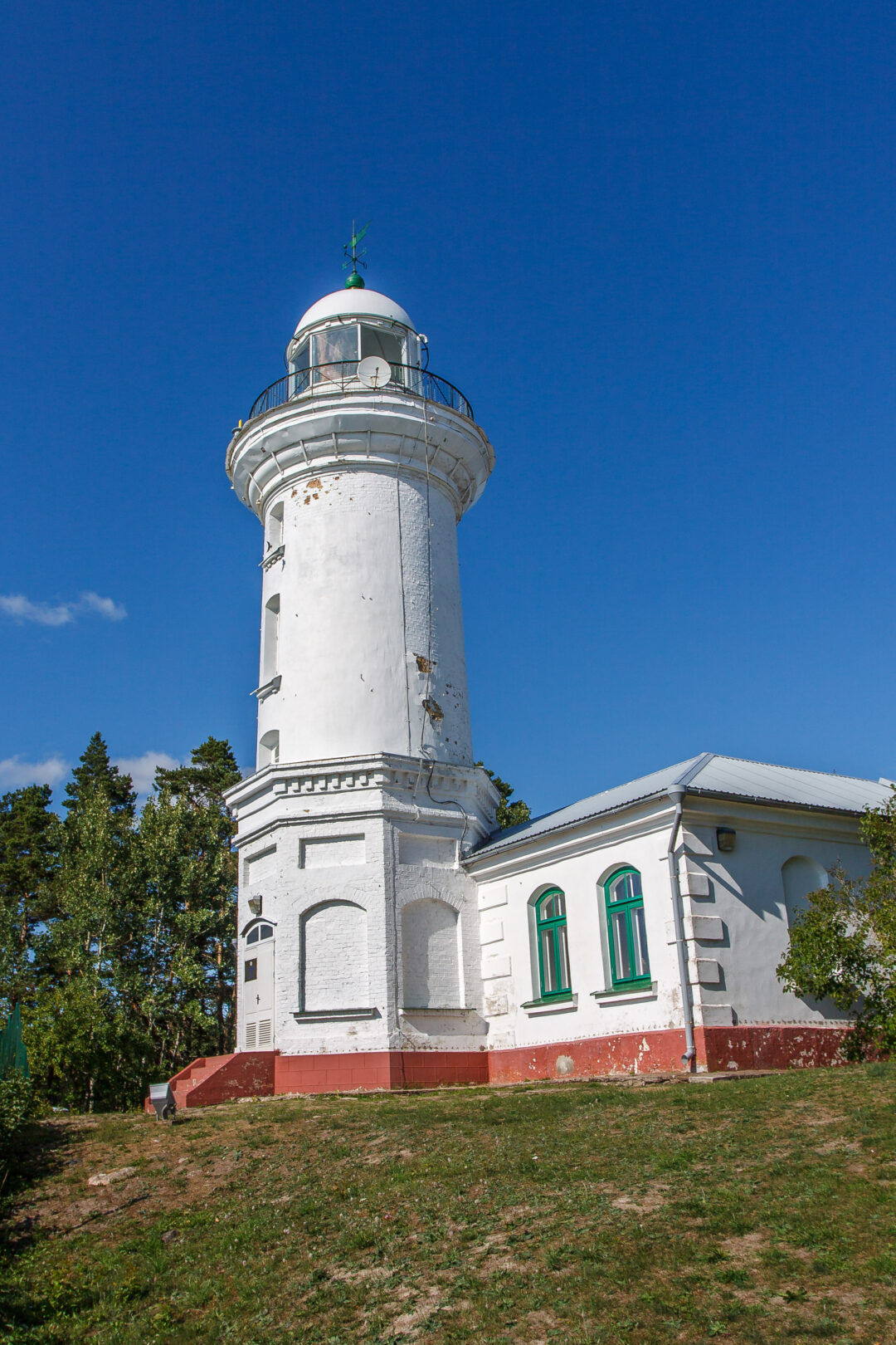 Маяк четырёхэтажный, оштукатуренный, побеленный и соединённый с жилым домом. В 20-х годах высота башни маяка достигла 50 метра. Внутри башни, вокруг центральной колонны, ведёт металлическая винтовая лестница. Наверху маяка находится балкон с металлическими перилами и световое помещение из металлических конструкций (его диаметр — 19 метра — соответствует диаметру маяка).