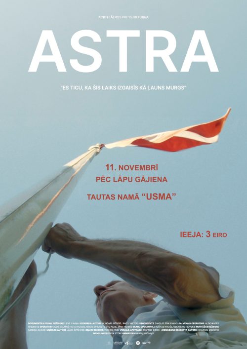 Будет показан документальный фильм «Астра» — биографическая история об уникальной личности с несгибаемым духом и твёрдым характером — Гунарсе Астре. Стоимость билета в кино — 3 евро.