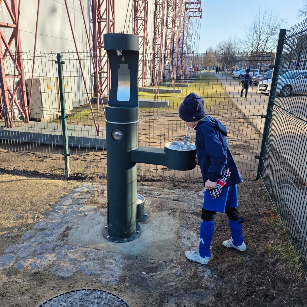 Jaunais, mūsdienīgais dzeramā ūdens brīvkrāns, vienu metru augstumā, pielāgots dažādu lietotāju vajadzībām – tas ļauj ne tikai ērti padzerties vai uzpildīt ūdens pudeles,  bet aprīkots arī ar četrkājainajiem mīluļiem paredzētu padzeršanās vietu. Līdz ar to tas būs ērts gan sportistiem, gan ģimenēm, gan visiem aktīvās atpūtas cienītājiem.