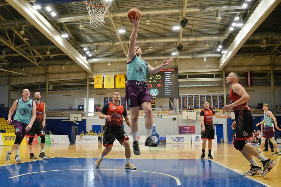 Pusfinālos Ventspils Tehnikums ar 78:62 un 83:75 pārspēja Anzāģi/Popi un divu spēļu summā bija pārāki 161:137. Otrajā pusfinālā Līgo/Velo pirmajā spēlē ar 73:71 zaudēja, bet otrajā spēlē ar 97:78 uzvarēja Brīvostas pārvaldi un divu spēļu summā uzvarēja ar 168:151.