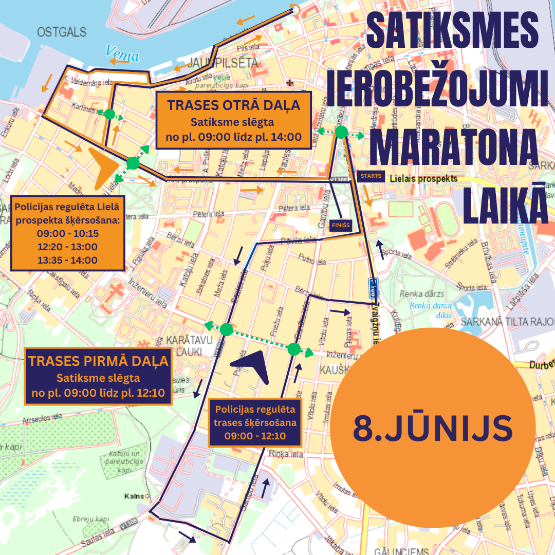Svarīgi! Pasākuma laikā gaidāmi satiksmes ierobežojumi – aktuālā informācija pieejama vietnē www.ventspils.lv. Dalībniekiem un skatītājiem automašīnas ieteicams novietot Reņķa dārza stāvlaukumā (Kuldīgas un Sporta ielu krustojumā, adrese: Kuldīgas iela 66).