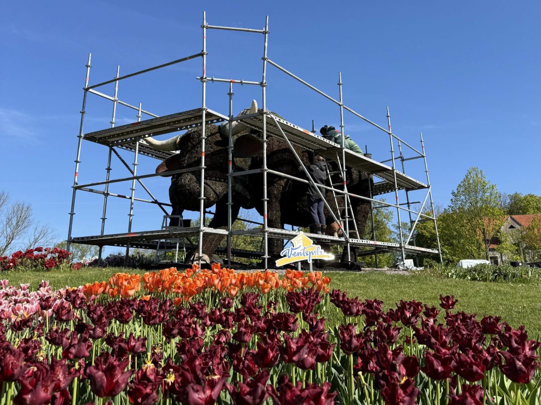 PSIA “Ventspils labiekārtošanas kombināts” pakāpeniski turpina ziedu skulptūru sagatavošanu vasaras sezonai. Šonedēļ puķu noformējums tiek veidots pilsētas lielākajai ziedu skulptūrai – “Puķu govij” Sarkanmuižas pļavā, kuras tērps šovasar rotāsies no 7000 ziedu.